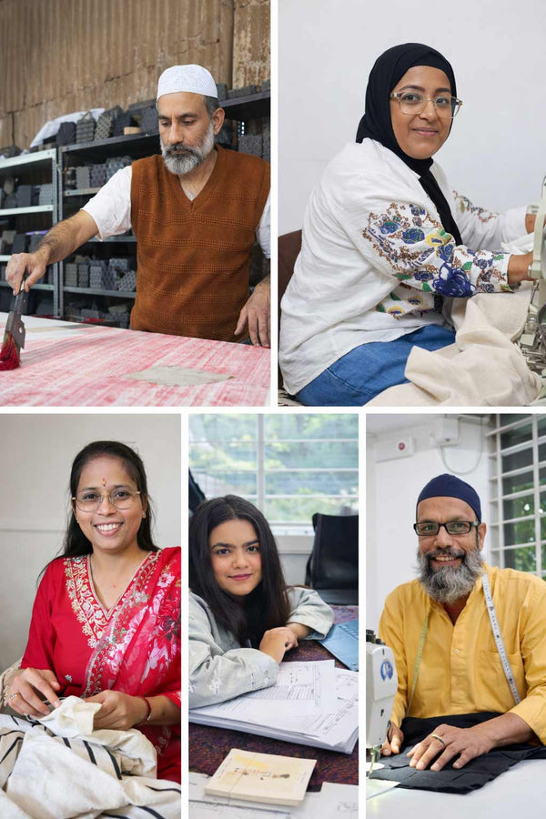 We work across India and Turkey with small teams who carry techniques forward—stitch by stitch, weave by weave.